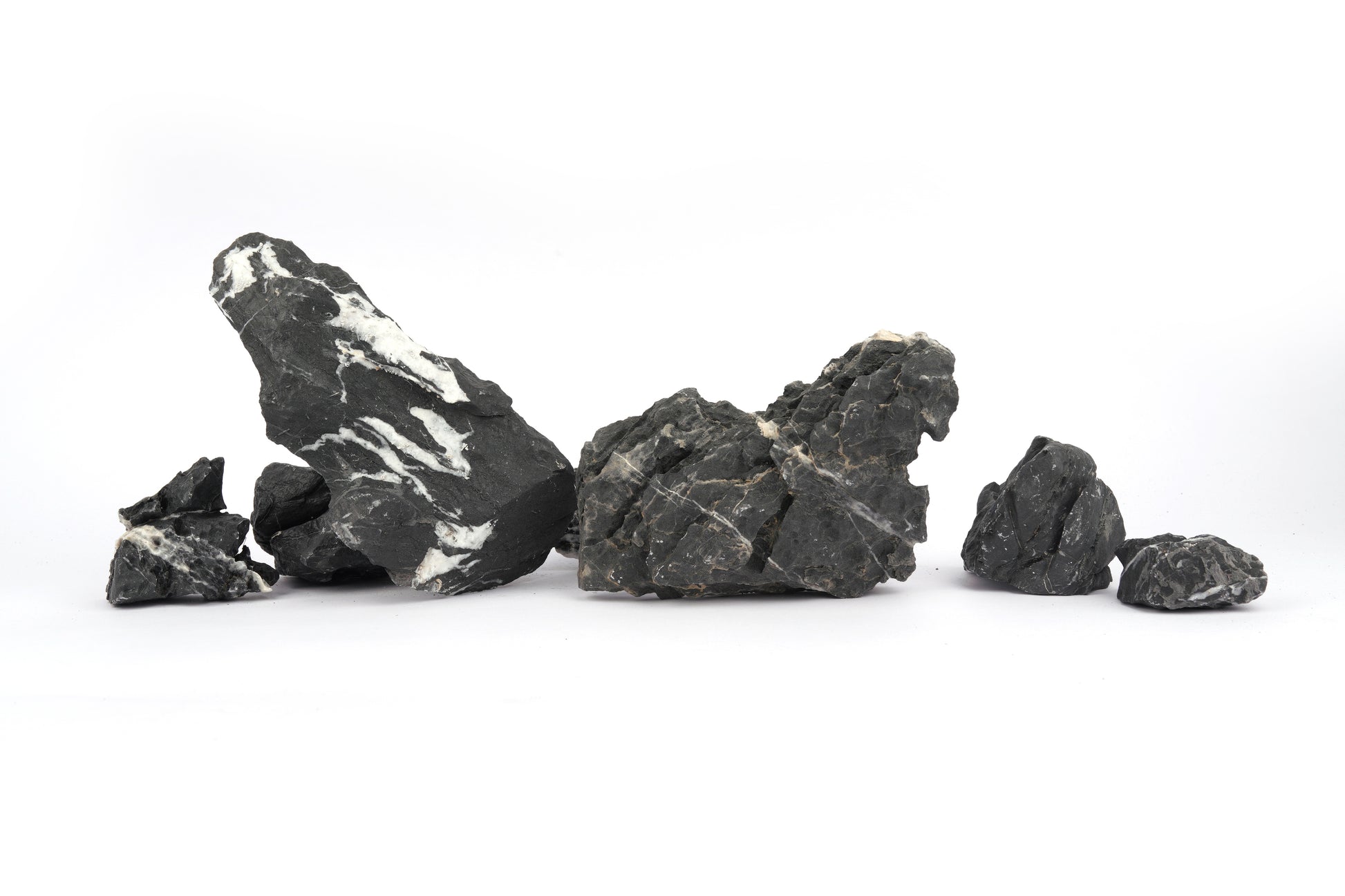 Also called Black Mountain Seiryu Stone, dark seiryu stone is considered a darker cousin to the seiryu stone. This stone gets is name for its darker grey, almost black color with a hint of a bluish undertone compared to the lighter seiryu stone. It has aggressive and jagged grooves. Its texture and characteristics resemble seiryu stone, making it perfect for getting variety and a good partner for brightly colored aquarium plants. Dark seiryu stones are versatile and can be placed at the bottom of hardscape layouts to mimic the natural environment, as well as for forest-style layouts on sandy bottoms and at the bottom of Iwagumi aquascape layouts. They can bring a natural look to aquariums, pallet boxes, aquariums, reptiles, and amphibian enclosures, creating friendly habitats and providing genuine support for aquatic life.